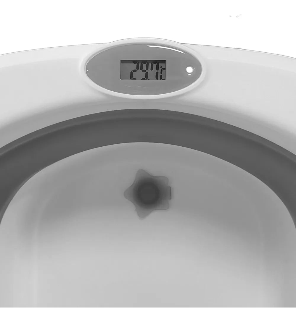 Com estrutura elevada e suporte resistente, a Bubbly evita esforços desnecessários, como se curvar para dar banho no bebê, promovendo mais comodidade para os cuidadores. Além disso, conta com um termômetro digital embutido, que garante a temperatura ideal da água em todos os banhos, oferecendo mais segurança e tranquilidade.
