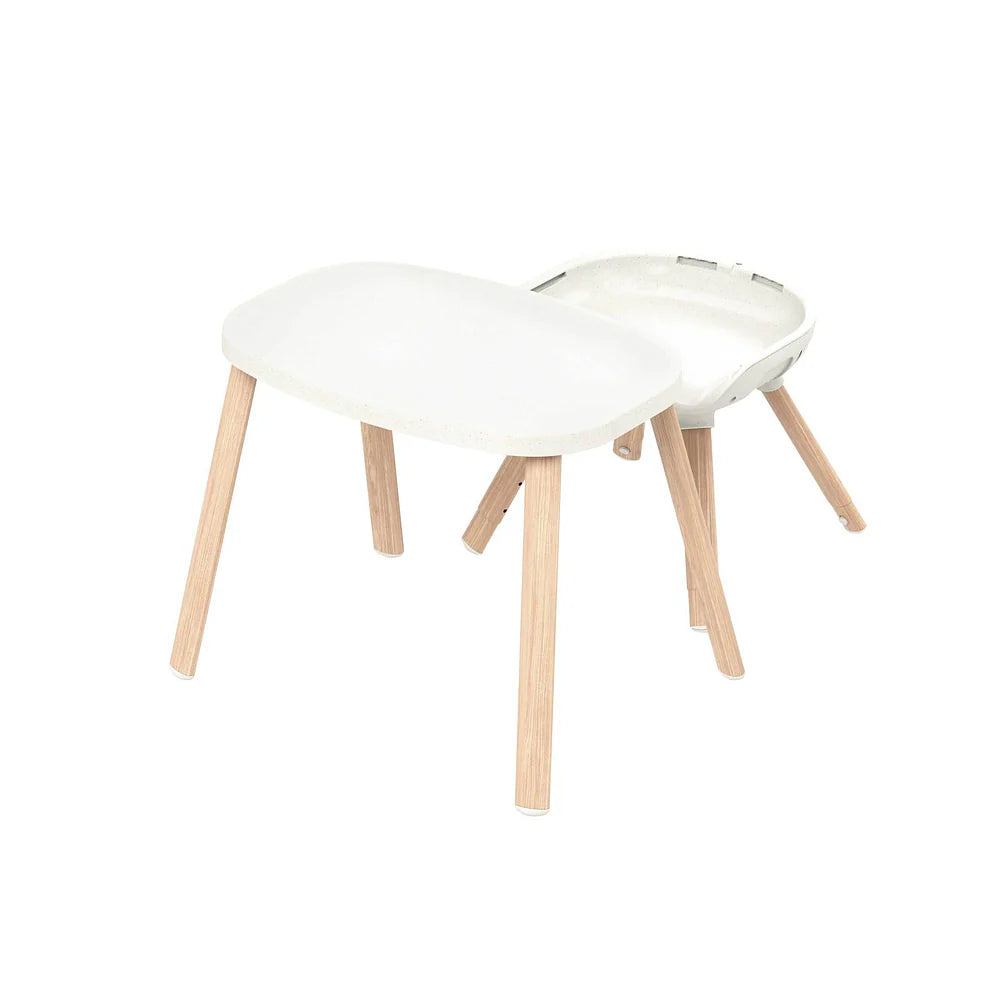 À medida que seu pequeno cresce e se torna mais independente, a cadeira de refeição de Moa continua sendo útil. Dos 3 anos até cerca de 5 anos (ou até no máximo 23 kg), ela se transforma em uma banqueta e um banquinho baixo com mesa, proporcionando um espaço próprio para o seu filho comer, desenhar ou realizar atividades interativas.