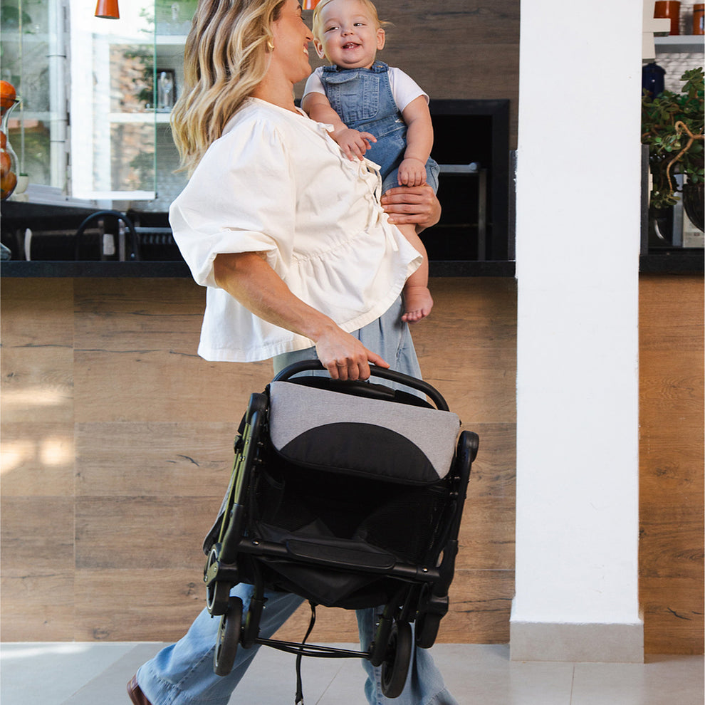 O cinto de 5 pontos mantém o bebê seguro e acolhido em todos os trajetos, e o cesto com capacidade para até 5 kg ajuda a manter por perto tudo o que é importante para o passeio. Além disso, suas rodas com amortecedores proporcionam uma condução estável e suave, mesmo em superfícies irregulares.
