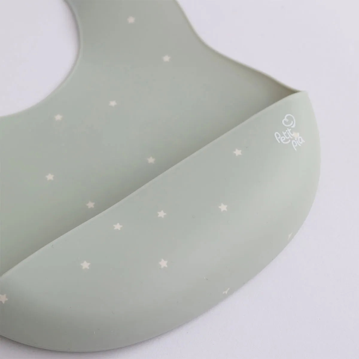 Kit Alimentacao 6 Pcs Prato, Copo, Babador 3 Colheres Verde - Petit Pia